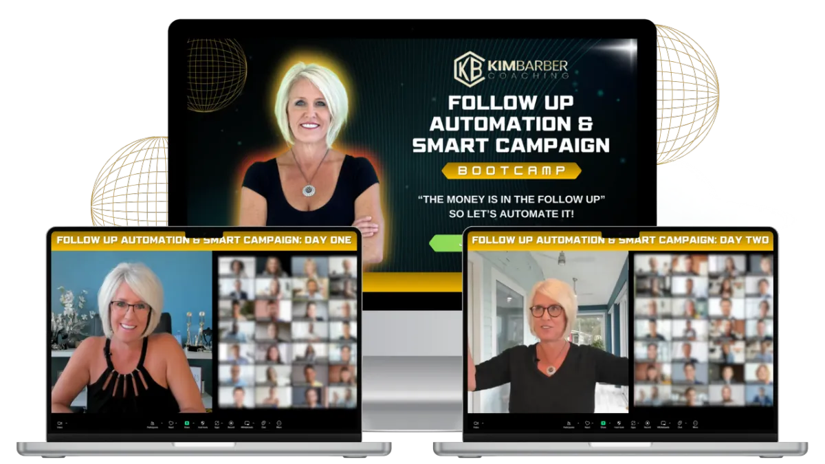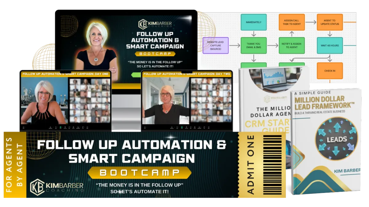 2 Days of LIVE Intensive Training — Led by Kim Barber, a real estate leader with over 985+ closed transactions and $385M+ in sales volume. You’ll learn how to build smart campaigns that sound authentic, automate your follow-up so no lead falls through the cracks, and integrate your CRM, Zapier, and lead sources into one seamless system that finally works for your business.